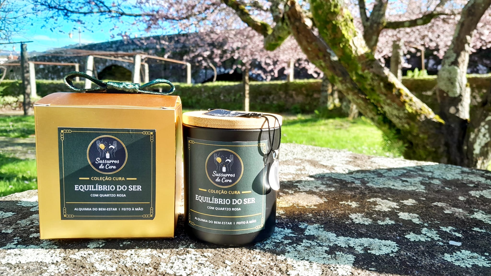 Uma homenagem à beleza e harmonia de Ponte de Lima. Esta vela celebra o amor-próprio e o equilíbrio emocional, combinando a suavidade das pétalas secas com a energia vibracional do Quartzo Rosa. É um convite para cuidares de ti com a mesma doçura com que a água corre no rio.